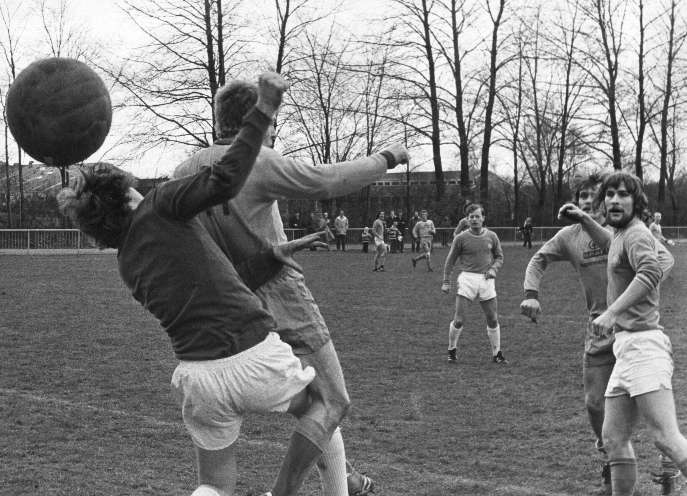 Nr 4 er Per Lundby, i baggrunden Leif Hammer, til højre Ove Christensen.